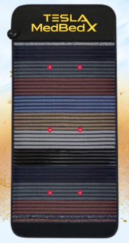 Tesla Med Bed X includes: • Infrared heat • Gemstone heating • Photon lights • Negative ions